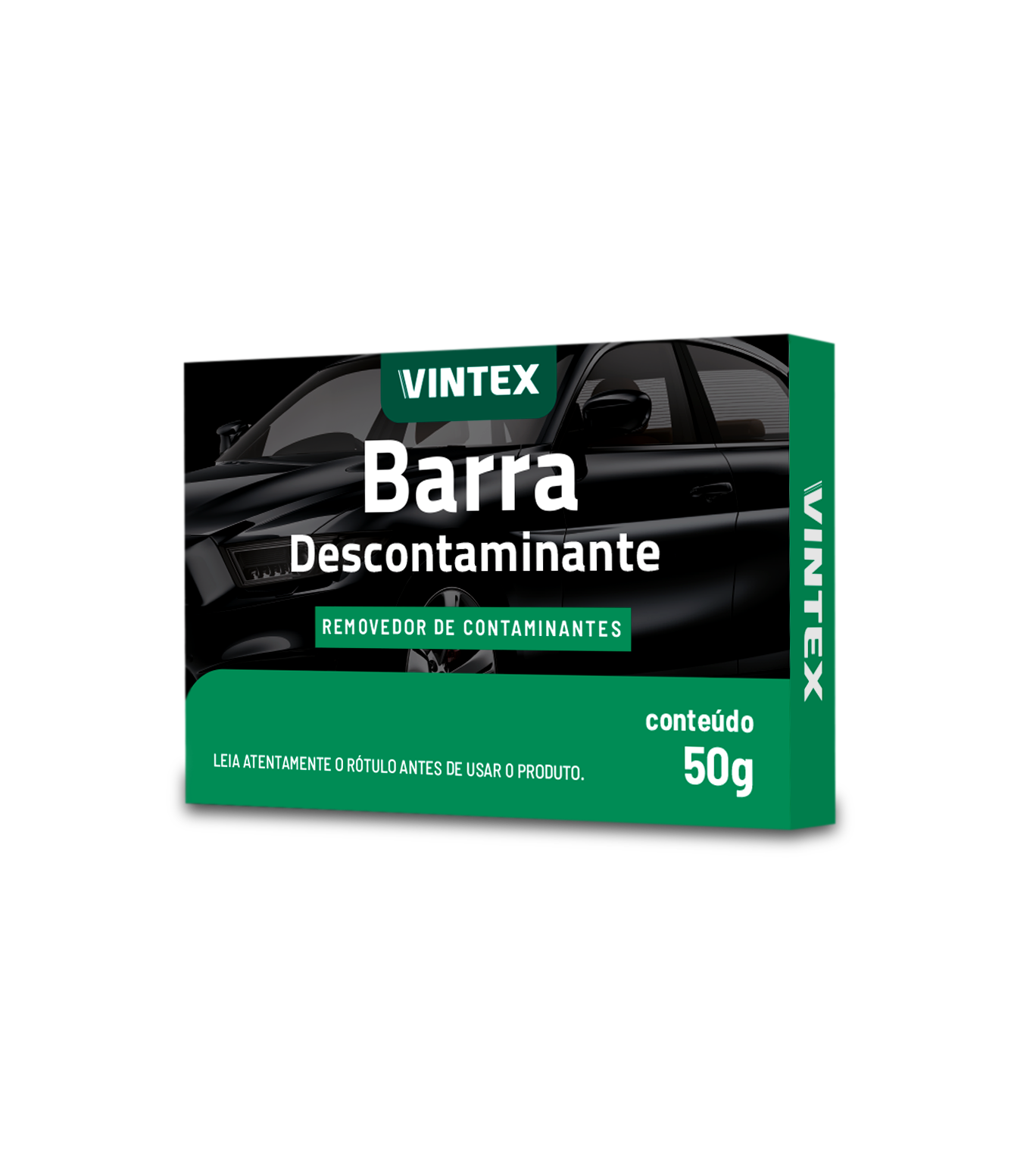 La Barra Descontaminante Vintex es un producto especialmente desarrollado para eliminar contaminantes de la pintura de vehículos, como exceso de pintura pulverizada, savia de árboles, excrementos frescos de aves, impactos de insectos, contaminación industrial, polvo de frenos, pigmentos de asfalto y diversos residuos que dañan la pintura, dejándola áspera y opaca. El producto se puede utilizar en pintura, vidrio, goma, cromo y faros.