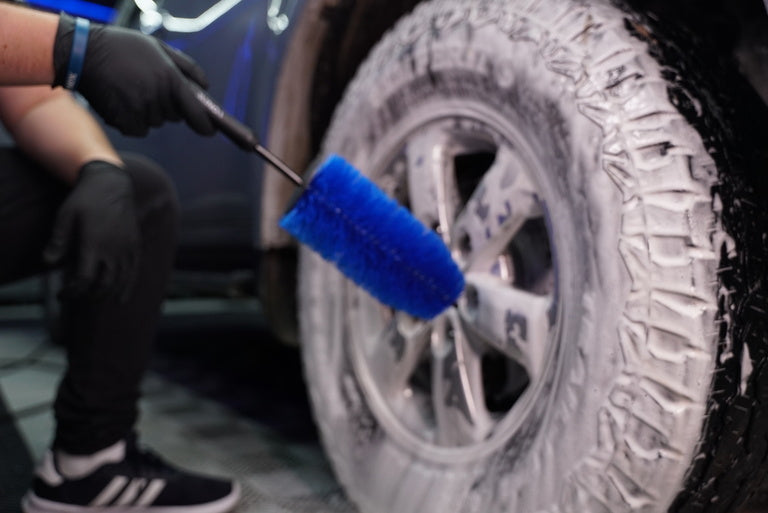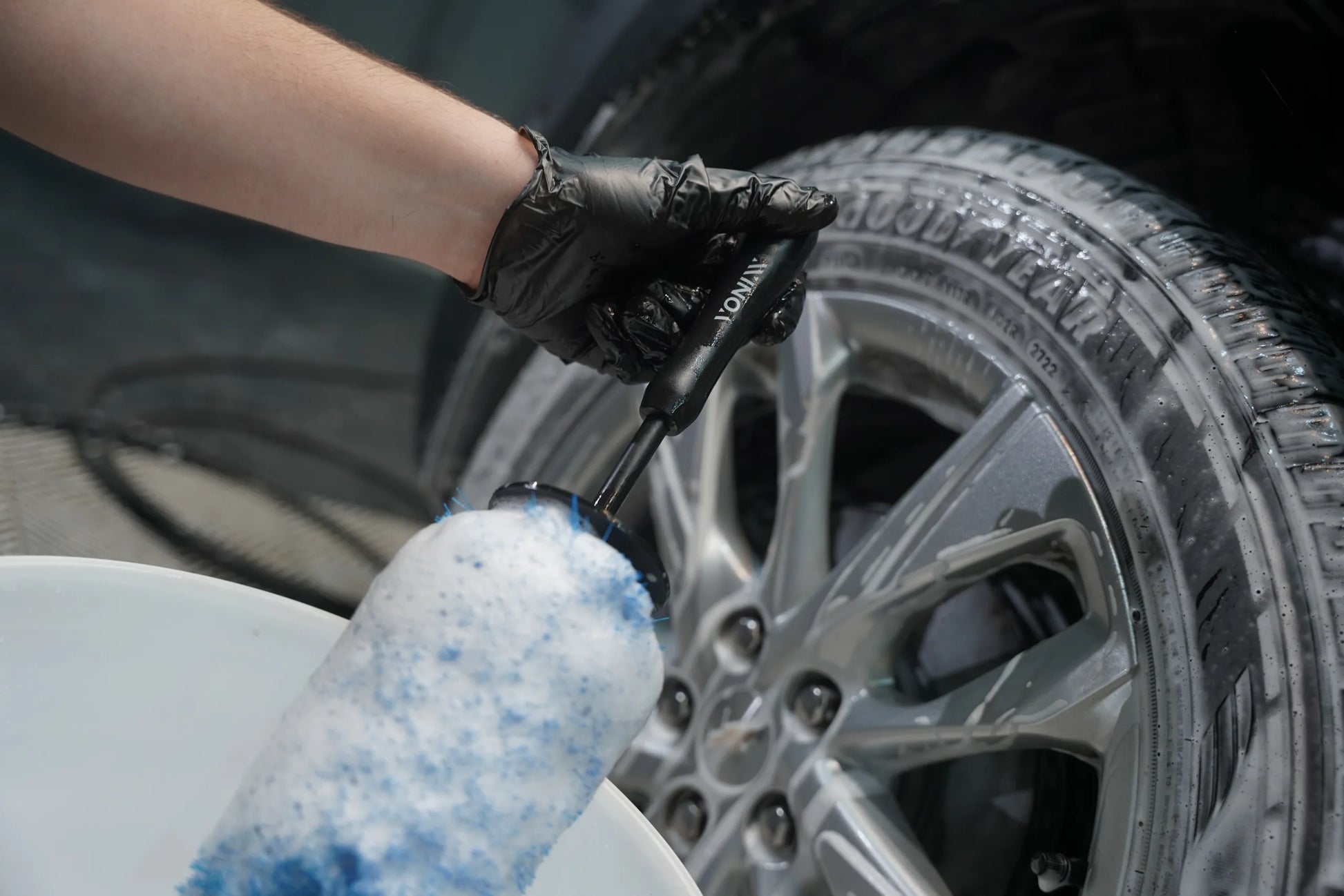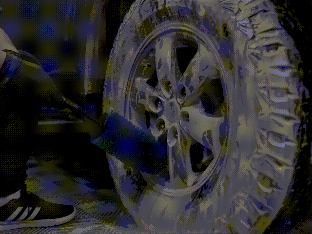 Pruebe el cepillo grande para agujeros de ruedas y descubra su forma única que permite limpiar de forma rápida y sencilla las áreas interiores de las ruedas.