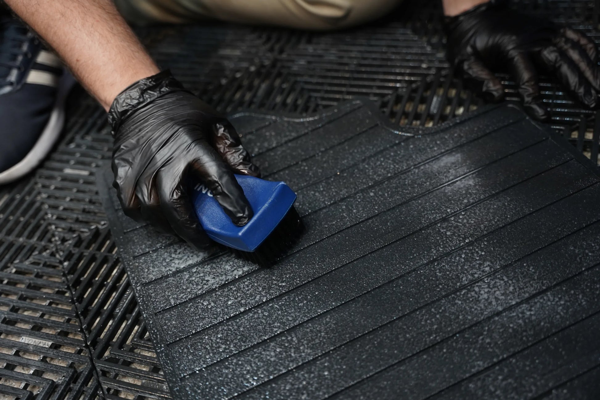 El cepillo de limpieza de cerdas intermedias es el producto ideal para la limpieza profunda de alfombras, plásticos y caucho.
