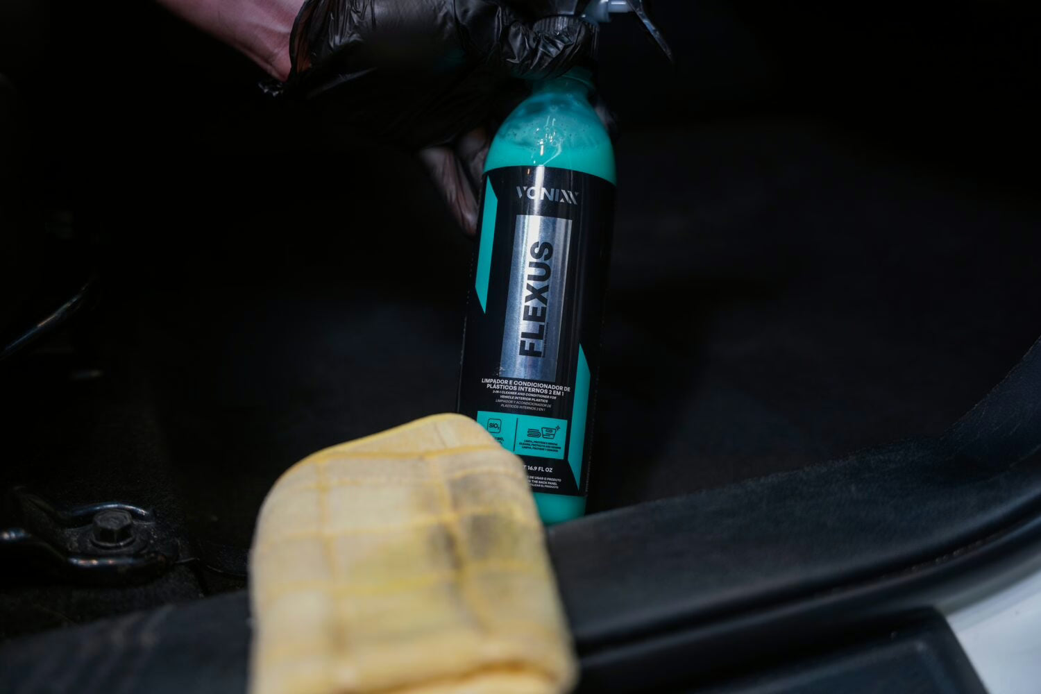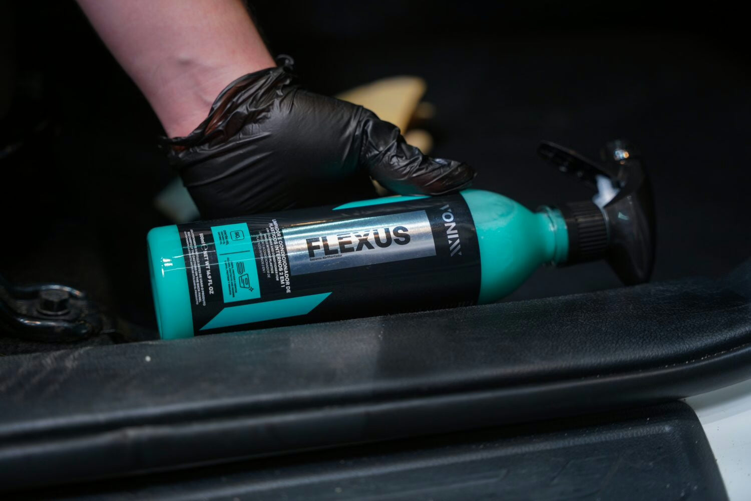 FLEXUS es un limpiador y acondicionador de plásticos para interiores 2 en 1 que limpia y protege simultáneamente. El producto contiene SiO₂ para mejorar la durabilidad y evitar superficies pegajosas. Proporciona un acabado seco al tacto, dejando la pieza limpia, con su aspecto original y protegida hasta por 3 meses.