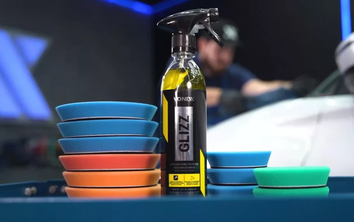 Glizz es un optimizador de almohadillas de pulido, desarrollado exclusivamente para mejorar el rendimiento durante el pulido automotriz. El producto aumenta la lubricación de las almohadillas, lo que facilita su remoción, previene obstrucciones, mejora el acabado de la pieza pulida, reduce la generación de polvo, aumenta el rendimiento de los compuestos de pulido y reduce la fricción, reduciendo así la posibilidad de que las microfibras dejen marcas en la pintura. Glizz también reduce las marcas holográficas y aumenta la eficiencia de los abrasivos.
