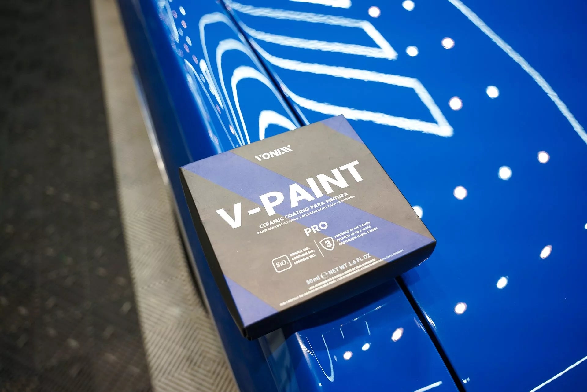 V-PAINT PRO es un recubrimiento cerámico para pintura con una durabilidad de hasta 3 años, desarrollado con moléculas de silicio que recubren la superficie del vehículo y forman una barrera nanotecnológica de alta resistencia.